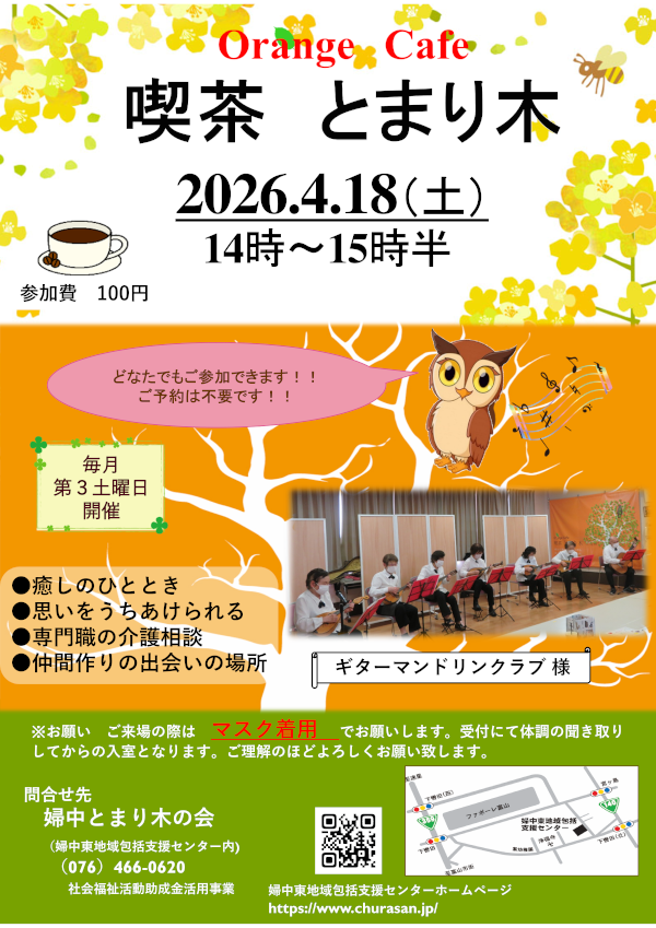 4/18(土)オレンジカフェ 『とまり木』 開催